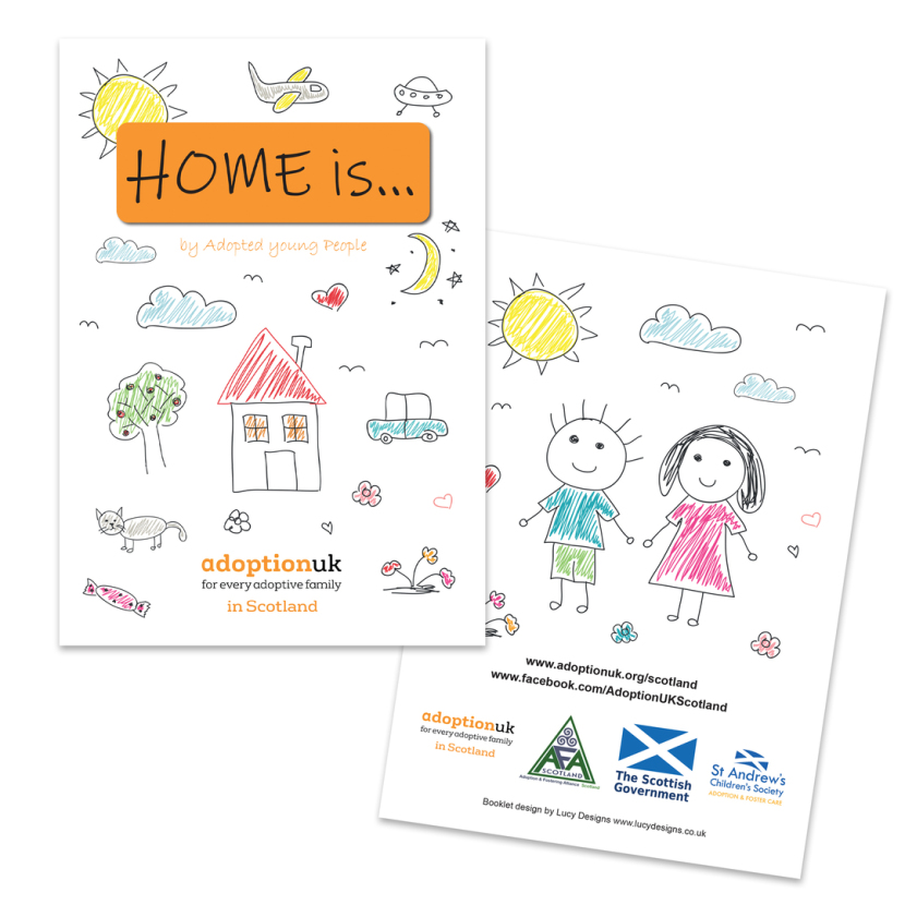 This was such a lovely job to work on. Adoption UK were recommended to use me by Scotland's Adoption Register. I created a commemorative book for the adopted children who attended workshops about what home means to them. The book is full of the children's artwork, poems and stories. For privacy reasons I can't show any of the inside images of the book. It is in a scapbook style and was very well received by the children and all attendees of the event that the children spoke at. A poster was made for each child to keep as well.