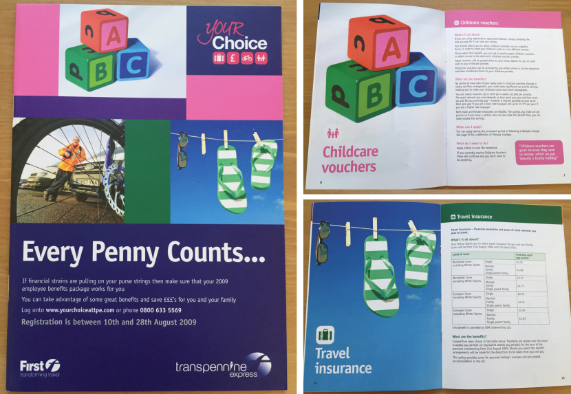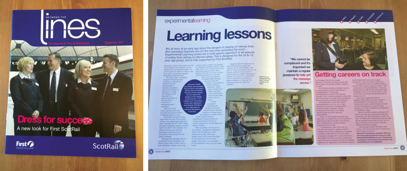 I have regularly designed work for FirstScotRail, including; quarterly staff magazines, new starts handbook, documentation, posters and staff information booklets. Here are examples of the staff benefits booklet and the staff magazine using First Scotrail branding. On the magazine I worked closely with one of our journalists.