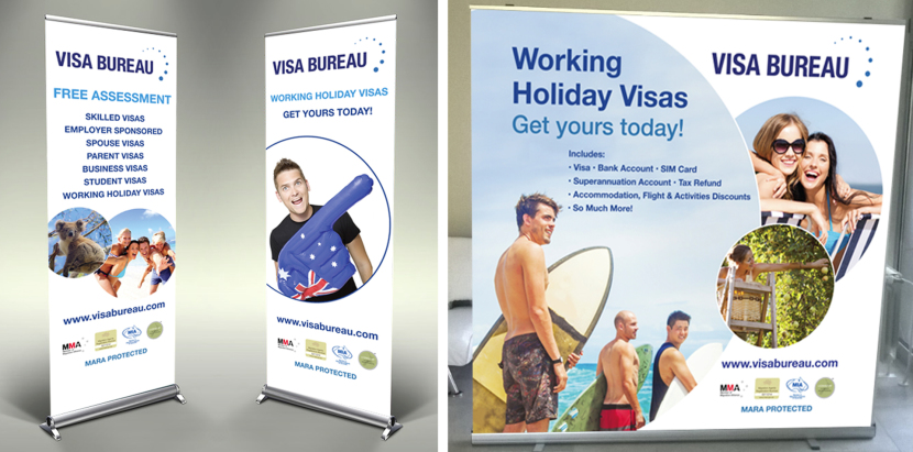 Visa Bureau contacted me to help them put together banners and collateral for an event they were attending. Having been let down by a previous company who were doing this for them, they contacted me to ask if I could design, and arrange the print for them in a very short timescale. Visa Bureau had no previous branding or look for their materials and so I created them fresh, eyecatching designs with the use of simple, clean colours and eyecatching images. I also contacted one of my print suppliers who did a fantastic job helping me get these printed and delivered in plenty of time for the event.
